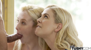 Страстный анальный тройничок начинается, когда лысый мужик даёт двум блондинкам свой пенис. Они смочили его слюнями, делая минет. Чувак вгоняет ствол в их киски, а затем в попки, долбя с напором. Телочки кричат, принимая его в разных позах. Оргазмы захлёстывают их, пока они сжимают анал. Похоть доводит их до экстаза, когда сперма покрывает их лица.