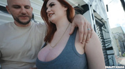 Рыженькая сучка с шикарным телом напялила обтягивающее платье и отправилась на прогулку, во время которой познакомилась с лысым пикапером и напросилась на секс. Abigaiil Morris прямо на улице встала на колени и отсосала мужику по всем правилам. После слюнявого отсоса цыпочка прокатилась на члене верхом и потрахалась в других позах.