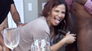 Озабоченная дамочка в татуировках получила заманчивое предложение от двух мужиков, но согласилась на него только когда немного выпила. Пьяная сучка сразу получила члены за щеку и смочила их слюнями по всем правилам. Продолжая работать ртом и дальше, шлюшка выпросила трах в вагину и кончила несколько раз подряд.