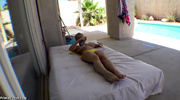 Мамаша в купальнике демонстрировала прелести и дразнила сына, пока не возбудила его дальше некуда. Милфа с силиконовыми буферами получила болт за щеку и качественно смочила его слюнями. Когда мадам хорошенько отработала ротиком, она получила болт во влагалище и трахалась без остановки, пока не кончила прямо перед камерой.