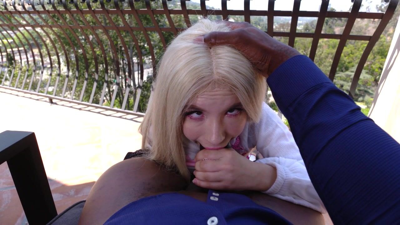 Красивая блондиночка с маленькой грудью покрутила попкой перед черным любовником и развела его на межрасовый секс. Малышка встала на колени и смочила огромный болт слюнями. Когда фигуристая Кензи Ривз хорошенько отработала ртом, она получила болт во влажную пилотку и потом приняла горячую сперму на ножки.