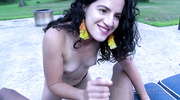 На диване у бассейна разыгрывается потная межрасовая драма. Брюнетка начинает с того, что жадно ласкает огромный ствол негра, готовя себя к проникновению. Черный мужик засаживает ей по самые помидоры, начиная глубокую и ритмичную долбежку. Сучка стонет на всё побережье, её тело блестит от пота под жарким солнцем. В финале мужик вынимает свой болт и делает мощный кремпай, заливая вагину брюнетки горячим семенем, которое начинает медленно стекать по её бедрам в этот развратный полдень.