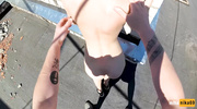 Малышка с шикарной попкой вытащила парня на крышу ради оргазма в необычном месте. Она заглатывала его член, стонала и тёрла киску, кайфуя от минета. Крошка раздвинула ноги, кричала и извивалась, пока он долбил её вагину. Она бурно кончила и приняла сперму на трусики. Телочка легла, хмыкнув, довольная экстремальным сексом.
