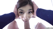Молодая азиатка с худощавым телом и в черных чулках оказывается перед камерой на жестком кастинге. Девчонка жадно вбирает длинный член глубоко в глотку, давясь и пуская обильные слюни, пока головка упирается ей в самое горло. Затем парень укладывает её на диван и с силой вколачивает агрегат в её узкую, розовую киску. Слышны влажные шлепки и надрывные стоны, когда ствол пробивает её до самого дна, заставляя хрупкое тело азиатки содрогаться при каждом глубоком и мощном ритмичном ударе таза.