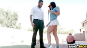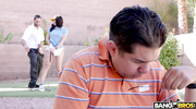 Гольф-урок разжигает похоть грудастой милфы. Тренер поднимает её юбку, вылизывая сочную киску до блеска. Они уединяются в доме, скрываясь от мужа. Она заглатывает его ствол, мутя слюнявый отсос. Чувак вгоняет болт в её пилотку, долбя раком с жаром. Её сиськи трясутся, пока оргазмы не накрывают её. Сперма заливает её попку, а она ликует, наслаждаясь запретным трахом. Измена добавляет адреналина.