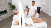 Зрелая блонда с сочной жопой попала на массаж, где массажист начал лапать ее. Она не стала ломаться, раздвинула ляжки, и он теребил ее мокрую киску, пока она не намокла. Сучка жадно засосала его болт, давясь до слез, и подставила пилотку. Он долбил ее, пока она не заорала, кончая. Сперма залила ее сиськи, и она хрипела от кайфа.