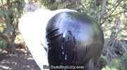 Мадам в кожаной юбке заманила мужика в лес и там развела его на страстный секс. В последний момент мамаша передумала и отказалась принимать член во влагалище. Вместо этого потаскушка заставила мужика дрочить и пялиться на нее, а в завершении приняла горячую сперму на задницу в кожаной юбке, так и не раздевшись догола.