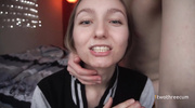 Блондинка-модель жаждет пошалить на камеру. Лаская парня, она впивается губами в его ствол, постанывая от похоти. Затем его член проникает в её глубокую глотку по самые гланды, от чего малышка давится слюнями. Она хрипит, представляя зрителей, и ускоряет ритм, цепляясь за его ноги. Экстаз захлёстывает её, а финал покрывает её грудь горячими каплями. Моделька слизывает остатки, наслаждаясь публичным кайфом.
