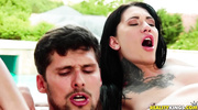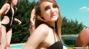 Худощавые телочки в купальниках не смогли отказать брутальным знакомым и согласились на оргию прямо у бассейна. Подружки сразу сняли купальники и доставили друг другу удовольствие с помощью пальчиков и язычков. Когда и этого не хватило, малышки отсосали любовникам и по очереди кончили от траха в пилотки.