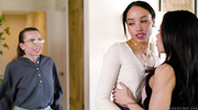 Контраст темной кожи мулатки и светлого тела азиатки выглядит невероятно пошло, когда эти худые брюнетки сплетаются в страстном куни. Девчонки с заросшими лобками жадно впиваются в киски друг друга, заставляя свои язычки работать в бешеном темпе. Слышны чмокающие звуки и прерывистое дыхание, когда подружки доводят друг друга до пика, используя пальцы и глубокое вылизывание клиторов. Их тела блестят от пота, а вагины обильно текут, пачкая простыни и бедра в порыве запредельной лесбийской похоти, переходящей в мощные множественные оргазмы.