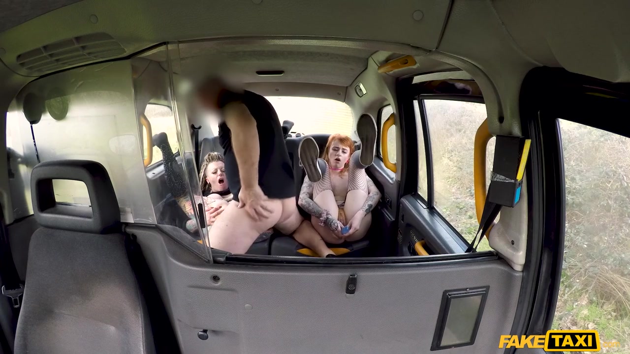 Развратные неформалки в татуировках сели в такси и сразу начали играться с большим дилдо. После лесбийского секса обе красотки умело отсосали водителю, но и на этом не остановились. Когда красотки закончили с минетом, они получили трах во влажные пилотки и даже по очереди обильно кончили от траха в тугие задницы.