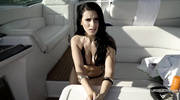 Жгучая брюнетка с большими сиськами возбудила мажора и развела его на страстный секс прямо во время прогулки на яхте. Цыпочка получила член за щеку и облизала его по всем правилам. После глубокого минета гламурная штучка отдалась в вагину, а когда и этого не хватило, отдалась в тугую анальную дырочку.