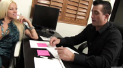 Чтобы отвлечься от работы, силиконовая секретарша показала прелести и возбудила босса. Блондиночка в возрасте нарвалась на секс прямо в офисе и тут же начала работать ртом. Когда милфа насладилась ответным кунилингусом, она отдалась в мокрую вагину и кайфовала от долбежки прямо на столе, пока не кончила.