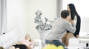 Грудастая блондиночка с парнем пришла на сеанс к психологу и согласилась на необычное лечение. Горячие сучки сразу встали на колени и отсосали болт, будто последний раз в жизни. После глубокого минета и ответного кунилингуса обе сучки отдались во влажные пилотки и по очереди достигли бурного и яркого финала.