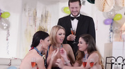 Азартная игра на вечеринке перерастает в оргию. Три зрелые подруги целуются, а парни смотрят, возбуждаясь. Вскоре они заглатывают их стволы, мутя отсос. Чуваки вгоняют болты в их киски, долбя по очереди. Телочки стонет, сжимая пилотки от кайфа. Оргазмы накрывают их, а сперма заливает их тела. Похотливая вечеринка завершает их ночь.