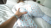 Проверка сестренки на влажность прошла успешно: пацан нащупал мокрую щелку прямо через пижамные штаны. Не теряя времени, он оголил её низ и вошел в тесную вагину. Блондинка послушно раздвигала ноги, принимая каждый сантиметр его члена. Крупный план показал момент, когда сперма начала вытекать из её переполненной пилотки, пачкая постельное белье.