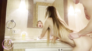 Пока ванна наполняется, худая блондинка в позе наездницы скачет на члене. Её стоны эхом разносятся, а она шепчет о кайфе. Вода плещется, пока он вонзает ствол в её тугую щель. Камера в POV ловит, как её попка подпрыгивает. Она хрипит, требуя глубже, и оргазм разрывает её. Сперма брызжет на её бёдра, и она, лаская липкую кожу, наслаждается развратом.