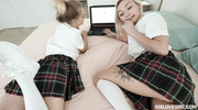 Студентки бросили все дела и набросились на толстый член братца одной из них. Обе сексапильные блондиночки умело отработали ротиками, а сами получили удовольствие от мастурбации и кунилингуса. После этого крошки по очереди отдались в мокрые пилотки и громко стонали, пока не кончили в процессе съемки POV порно.