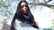 Пикапер познакомился с горячей брюнеткой и развел ее на секс прямо на улице. Чернявая красотка встала на колени и облизала болт по всем правилам. Когда брюнеточка качественно отработала ртом, она получила болт во влажную пилотку и трахалась на свежем воздухе прямо перед камерой, пока не испытала бурный оргазм.