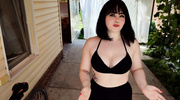 Пацан застает горячую соседку во дворе и заставляет её прямо там заняться оральными ласками. Брюнетка опускается на колени среди зелени, расстегивает его ширинку и начинает жадно сосать массивный болт. Камера от первого лица фиксирует, как её ротик вбирает головку, а слюни стекают по подбородку от усердия. Девка испуганно оглядывается, боясь быть замеченной, что только добавляет ей возбуждения. В финале парень щедро заливает её лицо и губы густой спермой, наблюдая, как соседка послушно слизывает капли.