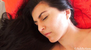 Брюнетка уснула без трусиков, а пацан вогнал член в её киску. Он драл щёлку, вгоняя ствол до упора, мял сиськи, пока она хрипела во сне. Меняя позы, тёр клитор, вызывая стоны. Кончила, сперма брызнула на лобок. Камера ловила её мокрые прелести и хрипы. Страсть утопила её в разврате. В завершении милашка тёрла липкие бёдра, не очнувшись.