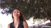 Чувак подкатил к жопастой брюнетке и развёл на секс. Она тёрла волосатую киску, возбуждая его. Заглатывая болт, сучка давилась слюнями. Он пёр её влажную пилотку на свежем воздухе, пока она визжала. Камера снимала её стоны в POV. Шлепки траха разносились вокруг. Сперма блестела на её животике, а она хихикала. Этот пикап она не забудет никогда.