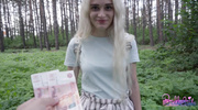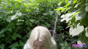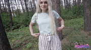 Сырая земля в лесу приняла два тела, погруженных в публичный разврат. Беленькая, худая штучка даже не успела снять джинсы до конца: Пикапер жестко задрал их и ворвался в её киску со стороны спины. Она стонала от боли и остроты ощущений, её крики были приглушены шумом ветвей. Он трахал её в быстром темпе, наслаждаясь риском и публичным унижением, завершив акт внутри её влагалища с грубым рычанием.