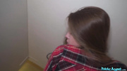 Купюра перекочевывает в карман, и вот уже жадная сучка стоит на коленях перед дырой в туалетной перегородке. Брюнетка в короткой юбке и чулках ловит ртом анонимный ствол, стараясь заглотить его максимально глубоко под звуки проходящих мимо людей. Риск быть пойманной только сильнее разжигает похоть, когда она чувствует, как прибор упирается ей в самое горло. Обильная порция спермы заливает лицо девицы, которая спешно вытирает рот и уходит, довольная быстрым заработком.