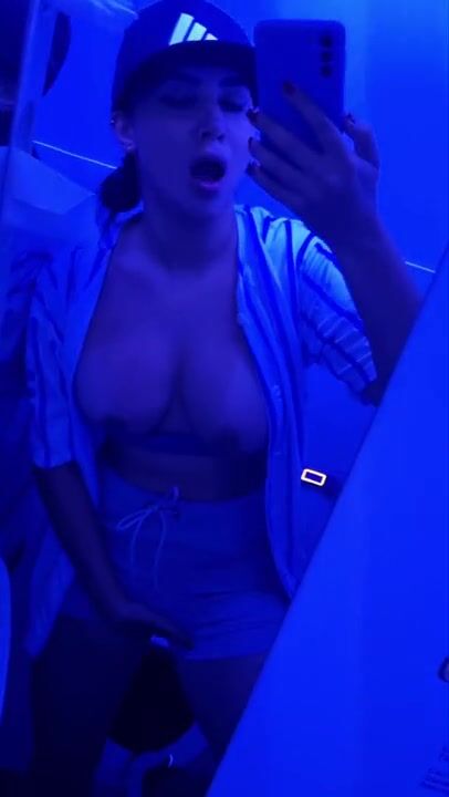 В тесном туалете самолёта брюнетка с пышными сиськами не сдержала желания, задрав платье и запустив руку под трусики. Камера телефона поймала, как она ласкает себя, хлюпая и сдерживая стоны, чтобы не выдать себя. Её тело задрожало от оргазма, а грудь колыхалась в такт движениям. Турбулентность добавила кайфа, и она кончила, едва не закричав. Она поправила одежду, подмигнув в камеру, и вернулась в салон.
