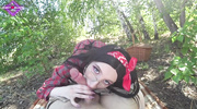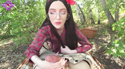 На прогулке в лесу брюнетка демонстрирует прелести и дразнит парня. Развратная крошка заглатывает ствол, слюнявя его в POV. Он вбивает член в её сочную киску, долбя стоя с жаром. Её тело содрогается от оргазмов, а дырочка обхватывает член. Она ласкает клитор, ускоряя кайф. Сперма заливает её лицо, и она слизывает капли. Брюнетка закатила глаза от кайфа, смакуя природу.