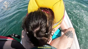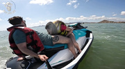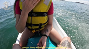 На гидроцикле посреди волн брюнетка с большой попкой дразнила парня, показав прелести в купальнике. Он вылизал её киску, пока она не застонала, держась за руль. Жеребец вонзил ствол, долбя её в воде, а её сиськи колыхались от толчков. Она кончила дважды, крича от кайфа, а он оставил сперму на её попке. Эта сучка, хихикая, слизала капли, наслаждаясь адреналином публичного секса.