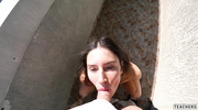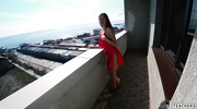 Худая брюнетка на балконе манит парня, оголяя худое тело. Его член входит в её влажную киску в POV, вызывая громкие стоны, которые заглушают шум города. Она впивается в перила, требуя глубже, пока её тело дрожит от толчков. Похоть бьёт через край, и она шепчет о риске. Оргазм накрывает её, а сперма заливает её живот. Брюнетка нежно гладит себя, смакуя публичный кайф.
