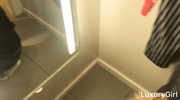 Очкастая телочка потащила парня на шоппинг, а там заодно решила пошалить с ним. Сексапильная россиянка легко возбудила парня дальше некуда и сразу же начала сосать член. Продолжая работать ртом и ручками прямо в примерочной, девчонка довела чувака до пика наслаждения, а сама в завершении угостилась вкусной спермой.