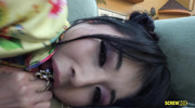 Опытная и развратная азиатка в традиционном наряде продемонстрировала прелести и возбудила русского пацана. Красивая брюнеточка сняла кружевное белье и дала чуваку вылизать обе узкие дырочки. После этого милфа с длинными ножками отсосала член, а в итоге достигла яркого оргазма от траха в мокрую вагину и даже в тугую попку.