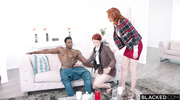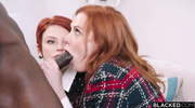 Жгучая рыжуха с подругой затащили негра в тройничок. Они подставили мокрые пилотки, и он долбил их по очереди, шлепая по сиськам. Рыжая скакала сверху, пока подруга теребила себя, потом они поменялись, трахаясь раком. Обе орали, меняя позы, и кончили от глубоких толчков, слизав сперму с его болта после дикого напора.