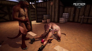 Два монстра вместе трахают рыжеволосую девушку конюха, прямо в конюшне