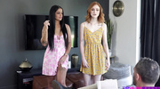 Рыжеволосая девчонка вместе со своей темнокожей подругой решают необычно поздравить брата, устраивая ему секс втроем. Девчонки сочно обсасывают его ствол с двух сторон, обмениваясь вязкими слюнями. Парень насаживает по очереди волосатую щелочку сестры и тугую дырочку мулатки, пронзая обеих по самую матку. Инцест-страсть накрывает троицу: рыжая сучка скулит, пока брат заколачивает болт в её подругу. Всё заканчивается тем, что парень заливает лица обеих красавиц густыми порциями теплого семени.