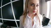 Сочная блондинка-секретарша в чулках манит босса в офисе. Разговоры о похоти подогревают её, пока она заглатывает его ствол. Чувак трахает её мокрую пилотку, долбя в одежде. Её тело дрожит, а стоны наполняют кабинет. Шлюшка сжимает влагалище, теребя клитор для кайфа. Вскоре сперма заливает её бёдра, и она пыхтит, извиваясь от наслаждения.
