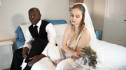 Невеста грустила в день свадьбы, но негр решил её утешить. Сорвав с неё платье, он лизал киску, пока она стонала, извиваясь на кровати. Возбуждённая сучка ответила, заглатывая его болт и лаская бёдра. Затем она оседлала его, принимая ствол в щелку по самую матку. Крича от экстаза, малышка кончила, а сперма брызнула на её дойки, стирая все печали.