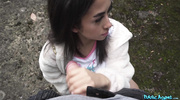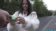 Пикапер познакомился с красивой брюнеткой и уговорил ее показать большие сиськи за деньги. Цыпочка показала буфера и сочную задницу, а потом начала сосать стоячий член. Красотка отработала часть денег ротиком, а после этого отдалась во влажную пилотку и громко стонала от глубокого проникновения, пока не кончила прямо на улице.