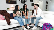 Сестра вместе с подругой-брюнеткой отказались от лесбийских ласк, решив обслужить брата в горячем ЖМЖ-тройничке. Девки по очереди садятся на член, попутно жадно вылизывая киски и обсасывая соски. Семейный разврат наполнен звуками сочных шлепков и стонами двух сучек, которые делят один ствол на двоих. Брат методично вбивает прибор в вагины девчонок, заставляя их выгибаться и требовать еще больше жесткости. Тройничок заканчивается полным изнеможением девок, чьи щелки блестят от обильной смазки и мужского семени.