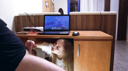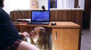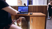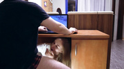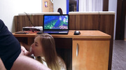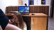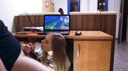 Пока парень увлечен игрой, его блондинка-сестра устроилась у него между ног. Девка в одежде достала его твердый стояк и начала жадно обсасывать ствол прямо под компьютерным столом. Вид от первого лица показывает, как агрегат пацана полностью скрывается в ротике сестренки под звуки влажного причмокивания. Сестра технично обслюнявливает головку болта, не отвлекая брата от экрана, но заставляя его стонать от кайфа. Сцена сосредоточена на тайном и слюнявом орале в домашней обстановке. Завершается всё тем, что геймер жестко обкончает лицо и одежду покорной сестренки.