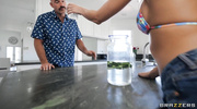 Миленькая блондинка в купальнике показала силиконовую грудь и легко развела усатого мужика на страстный секс. Крошка возбудила любовника за считанные секунды и тут же начала работать ртом. Цыпочка облизала болт по всем правилам, а когда насладилась чувственным кунилингусом, позволила отыметь бритую и розовую пилотку до оргазма.