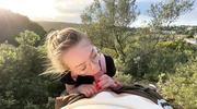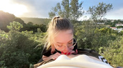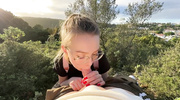 Поход в горы принимает неожиданный оборот, когда красивая блондиночка опускается на колени прямо среди дикой природы. Она жадно обхватывает губами ствол, демонстрируя слюнявый отсос под открытым небом. Риск быть замеченными только сильнее возбуждает сучку, и она заглатывает агрегат до самой глотки. Слышно сочное чавканье, пока ствол полностью исчезает в её рту, доводя парня до предела. В финале мужчина обильно заливает лицо и губы блондинки горячей спермой, которая смешивается с её слюнями на фоне горного пейзажа.