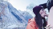 На вершине горы худая брюнетка решает удивить парня. Флиртуя, она опускается на колени и обхватывает его член губами в POV. Слюна капает, пока она заглатывает, а горный ветер заглушает её стоны. Она шепчет пошлости, ускоряя ритм, и умоляет кончить. Сперма заливает её лицо, и она облизывает губы, наслаждаясь публичным кайфом. Брюнетка сияет, растворяясь в горном экстазе.