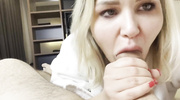 Mary Candy демонстрирует высший пилотаж влажных ласк, работая над членом парня крупным планом. Она обильно смачивает ствол слюной, создавая эффект скольжения, и начинает ритмично вбирать его в себя. Слышно каждое чавканье и причмокивание, пока губы блондинки плотно обхватывают головку. Mary Candy закидывает голову, стараясь принять болт как можно глубже, а её взгляд выражает абсолютную покорность. Камера фиксирует каждую деталь этого грязного акта, который заканчивается тем, что всё лицо милашки оказывается залито липким семенем.