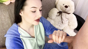Personal Life в одной пижамной маечке забралась к парню на кровать и сразу полезла в трусы. Она вытащила твёрдый член и принялась обсасывать его так слюняво, что весь ствол блестел от её слюней. Заглатывала до самых гланд, давилась и стонала от похоти. Парень схватил её за волосы и начал насаживать ротик глубже. В итоге он не выдержал и залил ей всё лицо и рот густой спермой, а она вылизала каждую каплю, улыбаясь во весь рот.