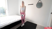 Спортивная Shinaryen пришла на кастинг, где решила доказать свою готовность, дав в пилотку. Фитоняшка сначала грациозно продемонстрировала свою форму в лосинах. После этого блондинка послушно легла, приняв стояк в вагину. Агент властно трахал её. Телочка громко стонала, и ее мышцы напрягались от удовольствия. Партнер кончил, и она надела лосины, ожидая результата кастинга.