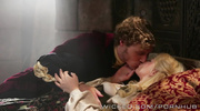 Спящая красавица с шикарным телом не смогла остановиться на одном лишь поцелуе и начала сосать принцу. Цыпочка в платье хорошенько поработала ртом, но на этом не остановилась. Закончив с минетом и насладившись ответным куни, блондиночка отдалась в мокрую и волосатую киску, от чего в итоге и кончила.
