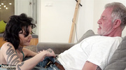 После изнурительной тренировки брюнеточка решила расслабиться со стариком, показав ему гибкость после йоги. Фитоняшка тут же насадилась на твердый ствол, демонстрируя свою готовность к разврату. Старик мощно и глубоко драл её влажную пилотку, заставляя спортсменку кричать все громче. Девушка заходилась в стоне, чувствуя, как агрегат растягивает её изнутри. Ствол изверг горячую сперму ей внутрь, и она довольно улыбнулась, насладившись таким финалом.